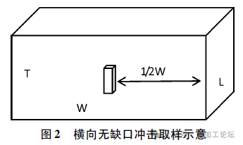 带状组织由测定的钢中的偏析确定,由于合金元素聚集而表现为黑色的条带或网状,是钢水在凝固阶段偏析形成的正常结果,形态很大程度上取决于凝固过程。偏析严重时,凝固过程中一次碳化物会在这些聚集区产生并沉淀,表现为可见的亮点。铸态条件下的偏析为网状结构,在随后的热加工变形过程中会逐渐伸展成线状。高温扩散可改善带状组织。 显微组织呈现出的是球化程度和二次碳化物的分布,其中元素V 含量使其晶界的碳化物沉淀更加清晰。材料经球化退火后,要求颗粒细小,均匀弥散分布在基体上,避免出现网状和链状。超细化退火可改善显微组织。 3 个横向无缺口冲击试样为一组,分别取自A、B、C 和D 试样的横截面中心位置,见图2,取样规格5. 5 mm × 7. 5 mm × 55 mm,统一经过1030 ℃×30min 油冷+600℃ ×120min 空冷+ 600℃×120 min空冷工艺热处理,最后经光学磨床加工成5. 0 mm × 7. 0 mm × 55 mm 成品试验。目标试样硬度46~48 HRC 范围内检测横向无缺口冲击,打击面为10 mm × 55 mm 截面,垂直于纵向。