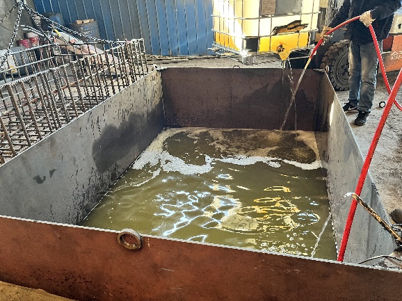(2) 旧淬火槽清洗,若原本是油槽,需要通过工业清洗剂,将油槽及循环管路的残油清理彻底后,再进行淬火液的配制;若之前是水槽,可以通过杀菌剂稀释液冲洗循环系统,清理残余脏污和细菌,排尽废水后再进行配制。