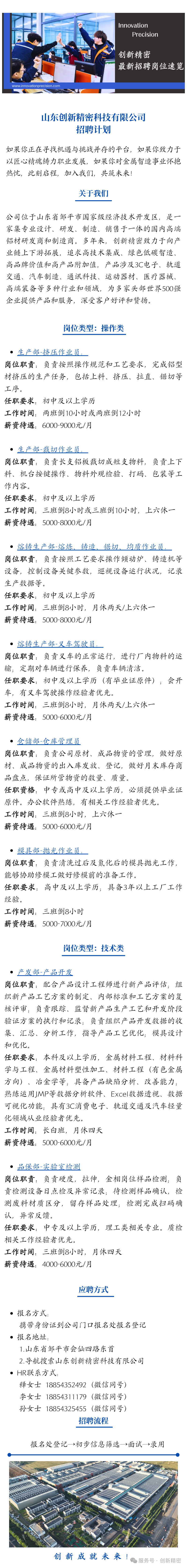 招聘丨创新精密国内招聘岗位速览