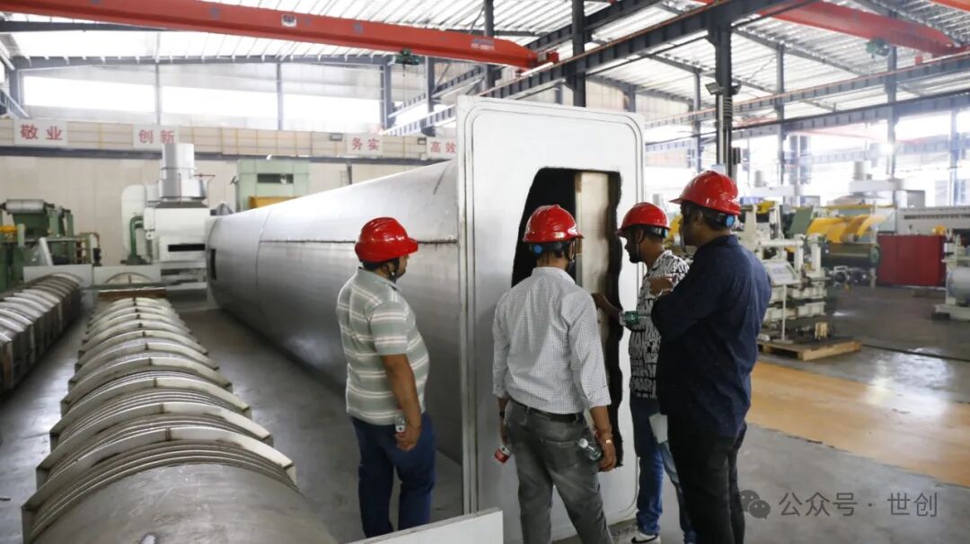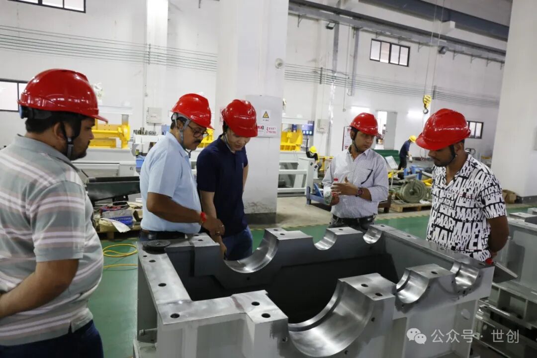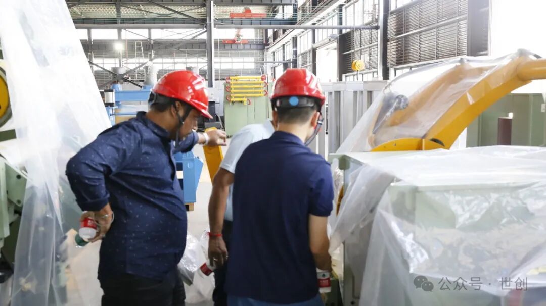在参观过程中,外贸部经理陈德泳详细地介绍了工厂的智能化生产流程。从原材料的筛选到产品的精细加工,每一个环节都体现了世创对品质的严格把控。印度金达莱的高管们饶有兴致地聆听着讲解,不时提出自己的疑问和见解。他们对世创的自动化生产线表现出了浓厚的兴趣,纷纷驻足观看,仔细观察每一个生产步骤。