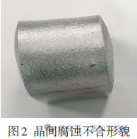 晶间腐蚀按照ASTM A262 E 法进行。采用线切割在中心位置切取试样。试样经过1050±10℃固溶、抛光后进行腐蚀试验。对试样进行180°弯曲后,在受力弧面上发现多处皱裂,缺陷形貌如图2 所示。