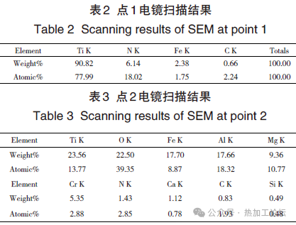 在链状夹杂物处进行电镜分析,结果如表2、3和图7、8、9 所示。方形等规则夹杂物主要是TiN,形状不规则夹杂物主要是含有Al、Mg、Ti 的氧化物。